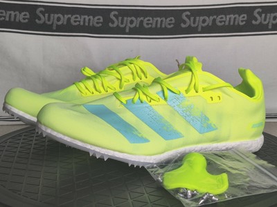 | Great-looking Super Lightweight Adidas Adizero metal track running spikes in excellent used condition. US Men's size 6.5 Very little wear. As you can see that the soles show few signs of previous use. With a shoe this lightweight. There is the normal creasing from prior use, but there are no rips, tears or stains whatsoever. VERY CLEAN! Patent leather in a gorgeous Bright Blue. With Silver stripes for most of the upper. Vented nylon material in the back. 6 metal spike slots on each foot(2 spikes missing. Easy to replace) Plastic bottom in excellent condition& show almost no signs of use at all. Top zipper to protect shoelaces works perfectly. Shoelace grommets in excellent condition. UK size 6 France size 39 1/3 Japan size 245 China size 240 As always. See pictures for more details& email any questions. Also. I pre-weigh all my ... more packages ahead of time to ensure the most accurate shipping possible. |